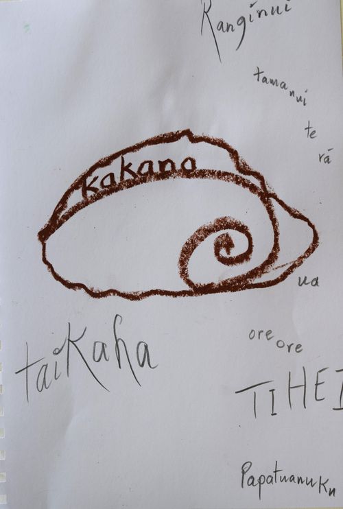 Speaking of the drawing she did representing what gives her pleasure and strength Molly said, “ah that's important to me that’s rima, that’s five, the numeral 5. They’re my 5 children, I always think of them, my five children.” Molly touched the new moko on her forehead that she received recently, and said, “I greet it every day and talk to them, my five children.”