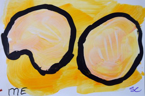 “I think it's like seeing myself through my own glasses. Yeah, and in a way, it's got two meanings because there’s the clouds and the clouds are like my glasses. So, the clouds can be clouds, but they're also like, the lenses, and I’m looking through them at myself.”